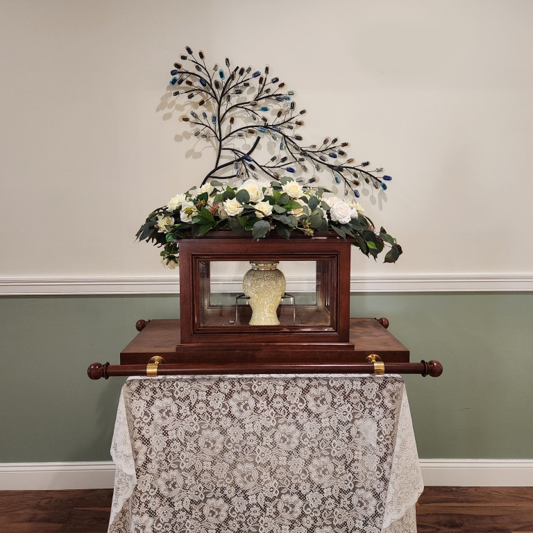Includes cremation with one-hour visitation followed by a service at our facility. The Silver Birch includes all the services included in our direct cremation packages as well as 2 hour use of our facilities for service and visitation. The package includes the use of our urn ark, stationary package of 100 prayer cards, guest book, acknowledgement cards, a Tribute video of 75 photos or less and perpetual on-line Tribute Wall on our website.
